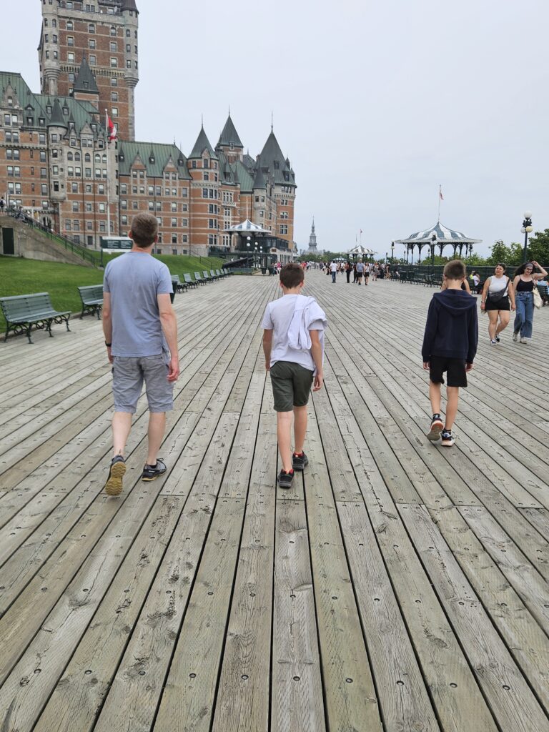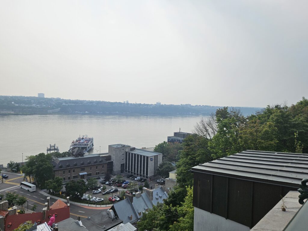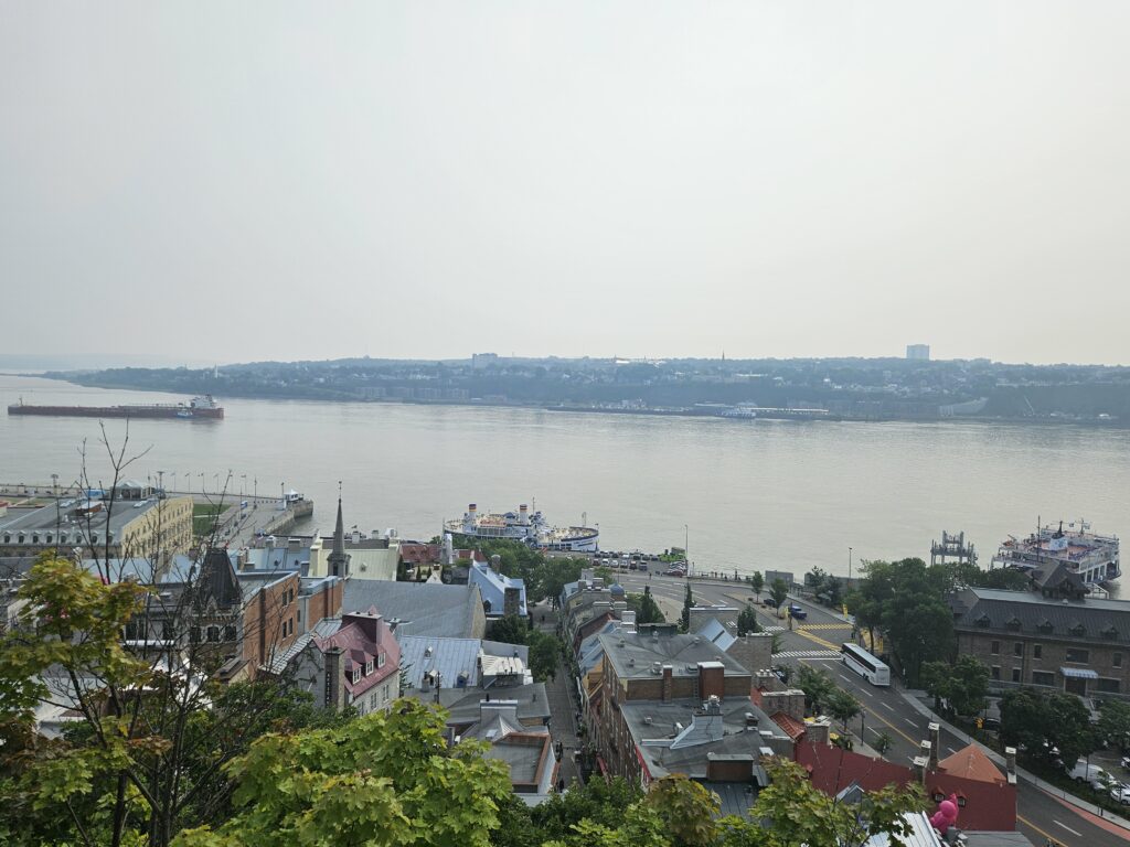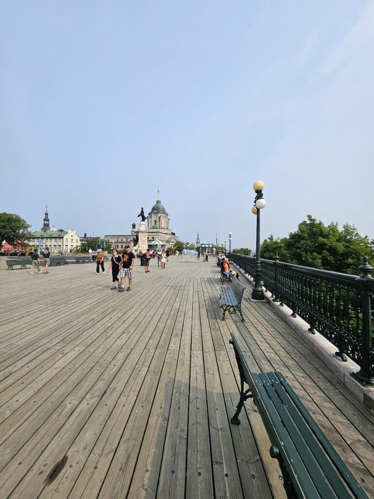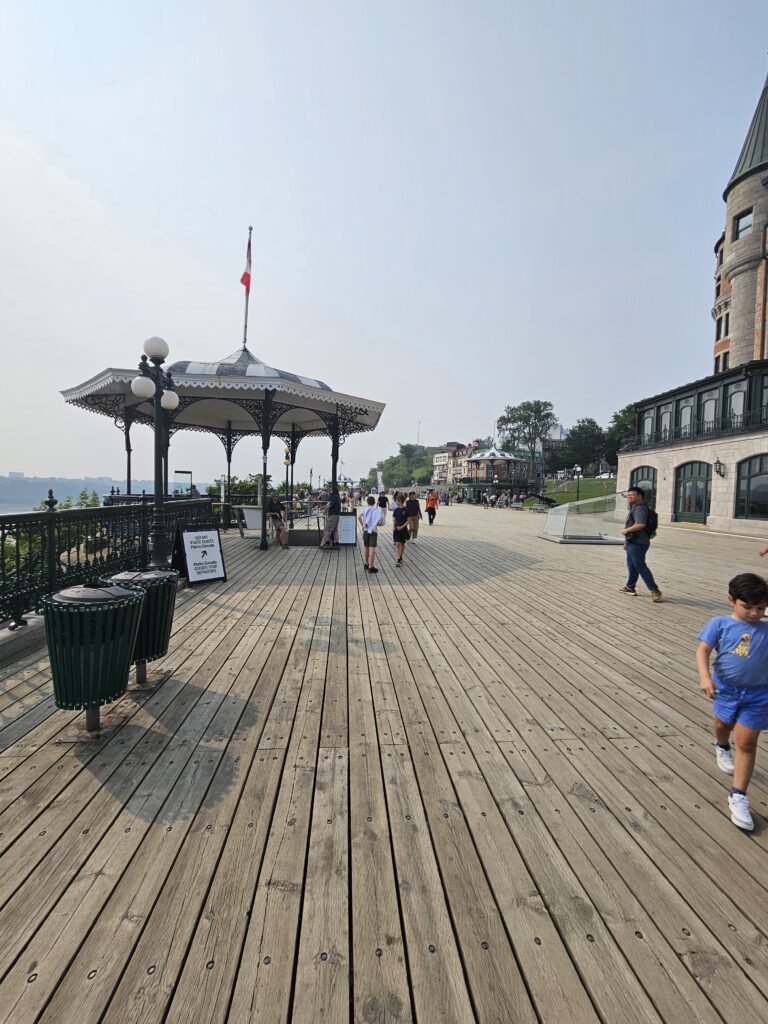 Au pied du château Frontenac, la terrasse Dufferin, longue promenade en bois dominant le Saint-Laurent. Aujourd’hui la vue n’était pas super, assez brumeuse.