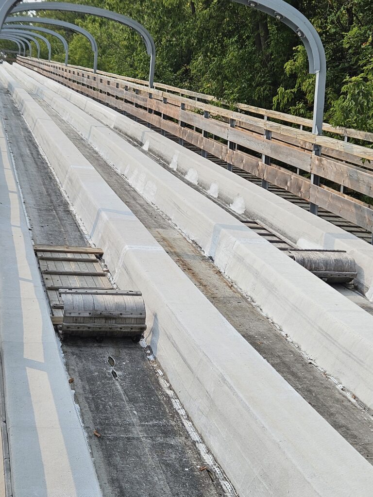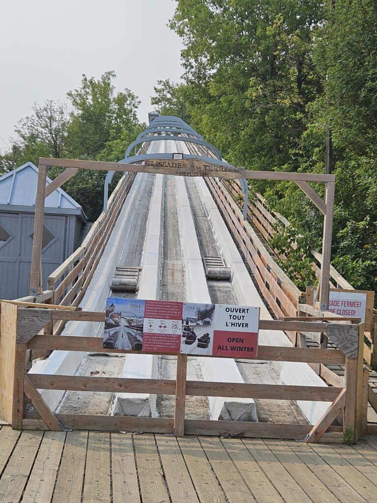 En hiver au bout de la terrasse Dufferin, il y a les glissades de la terrasse, un toboggan de glace.