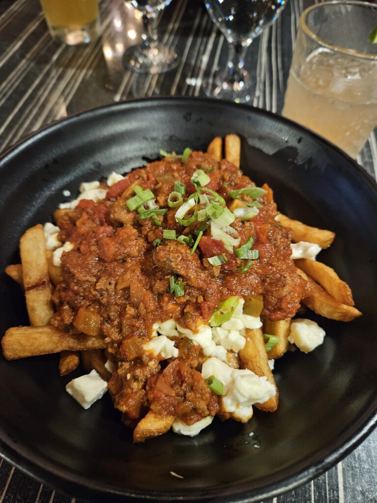Retour dans la chambre d’hôte pour se poser un peu avant d’aller souper. Ce soir nous testons la fameuse poutine, plat fait de frites, sauce et fromage. Pour moi poutine italienne sauce bolognaise et fromage, pour Jérôme poutine smoked meat fromage et effiloché de smoked meat. Très copieux, fromage sans goût, je ne sais pas si je retenterai. Les gars n’ont pas testé.