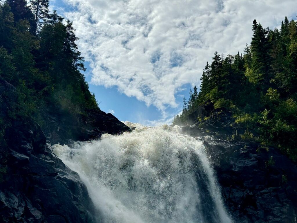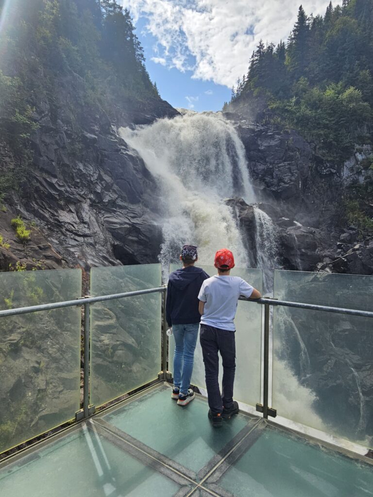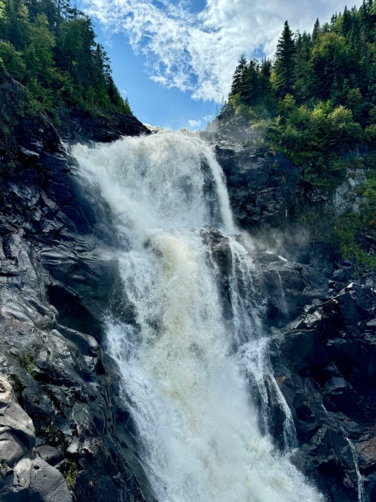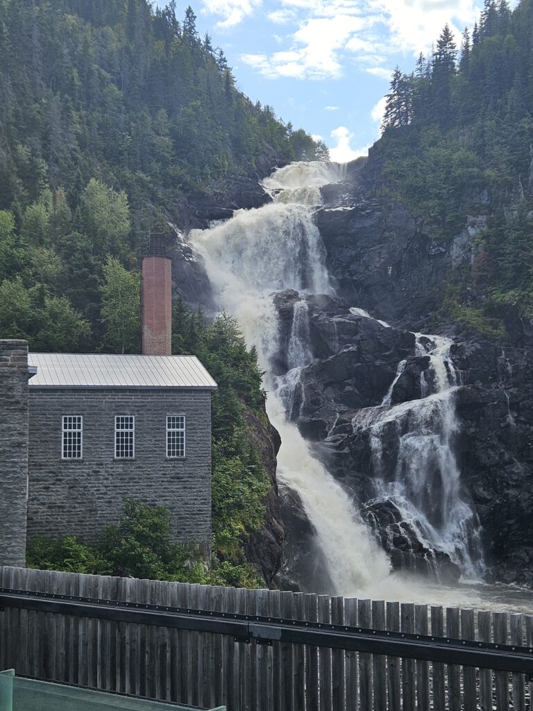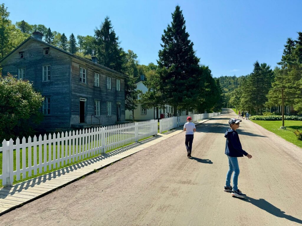 Nous nous arrêtons une bonne partie de la journée pour visiter le village historique de Val-Jalbert. Village qui a été abandonné en 1927 après la faillite de l’usine de pâte à papier (la pulperie). Depuis les années 70 c’est devenu un site historique. Ce village s’est établi près d’une chute d’eau qui servait à alimenter le village.