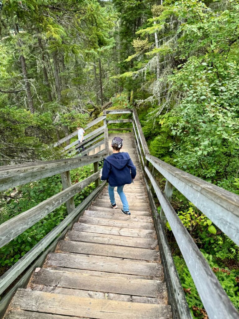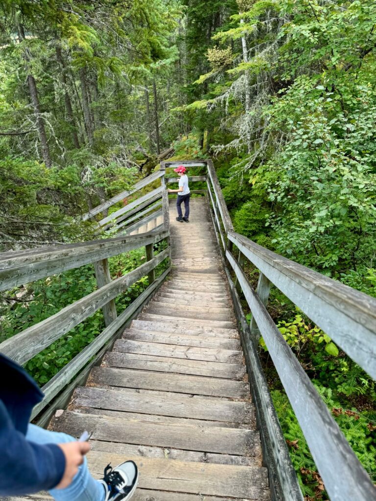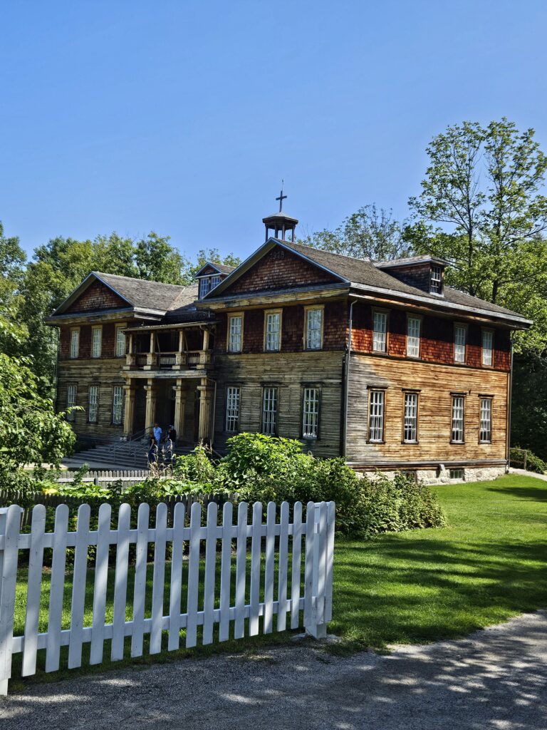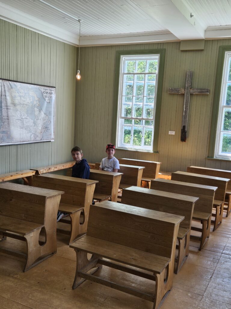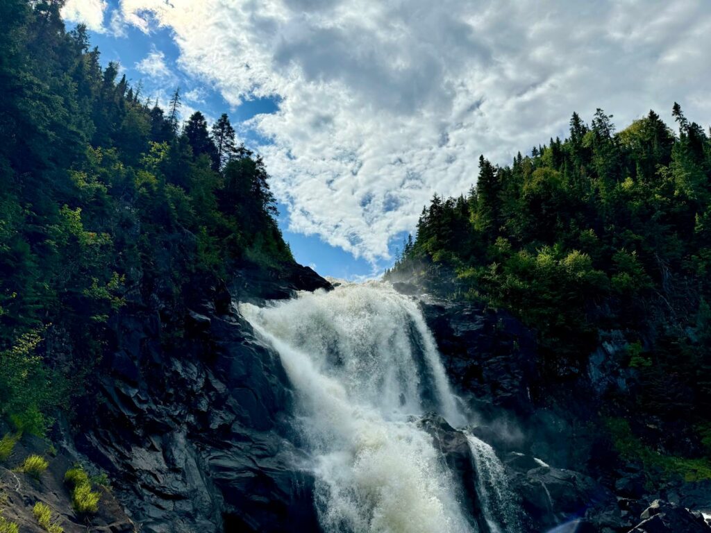 Nous nous arrêtons une bonne partie de la journée pour visiter le village historique de Val-Jalbert. Village qui a été abandonné en 1927 après la faillite de l’usine de pâte à papier (la pulperie). Depuis les années 70 c’est devenu un site historique. Ce village s’est établi près d’une chute d’eau qui servait à alimenter le village.