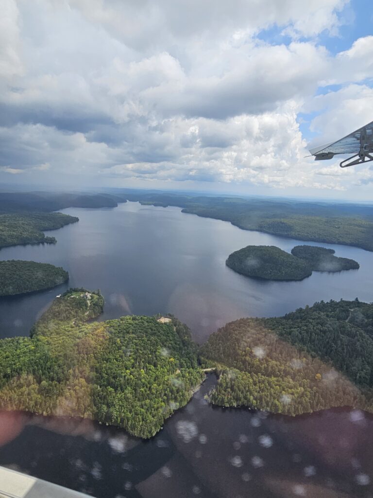 Nous avons survolé le parc nationale de la Mauricie et de grands lacs dont le lac Sacacomie.