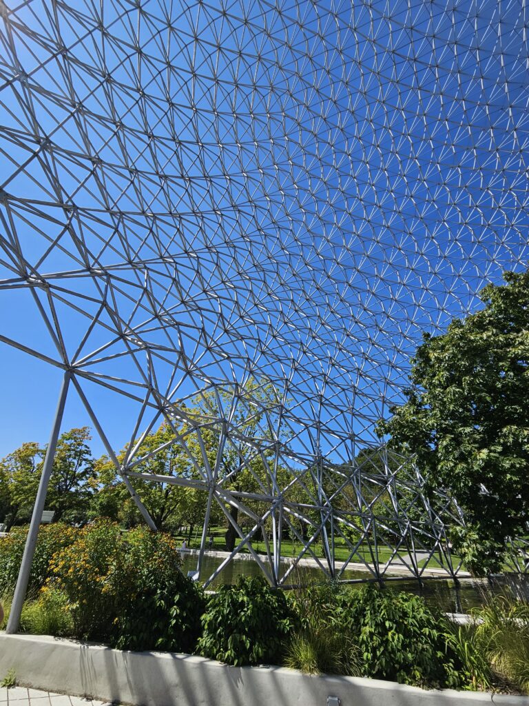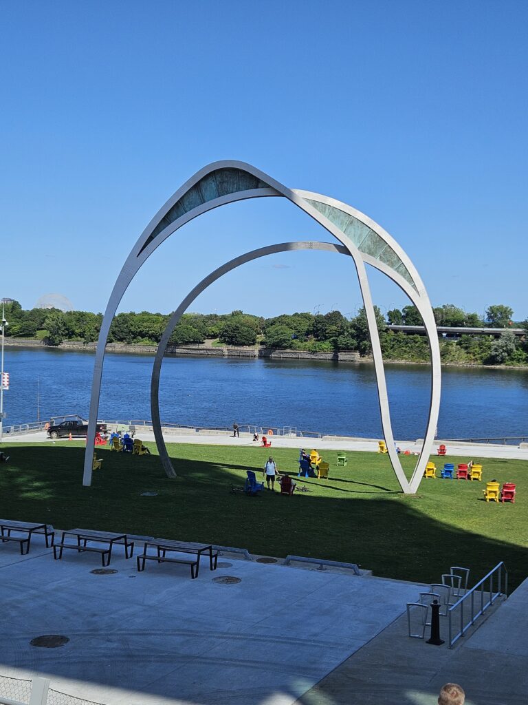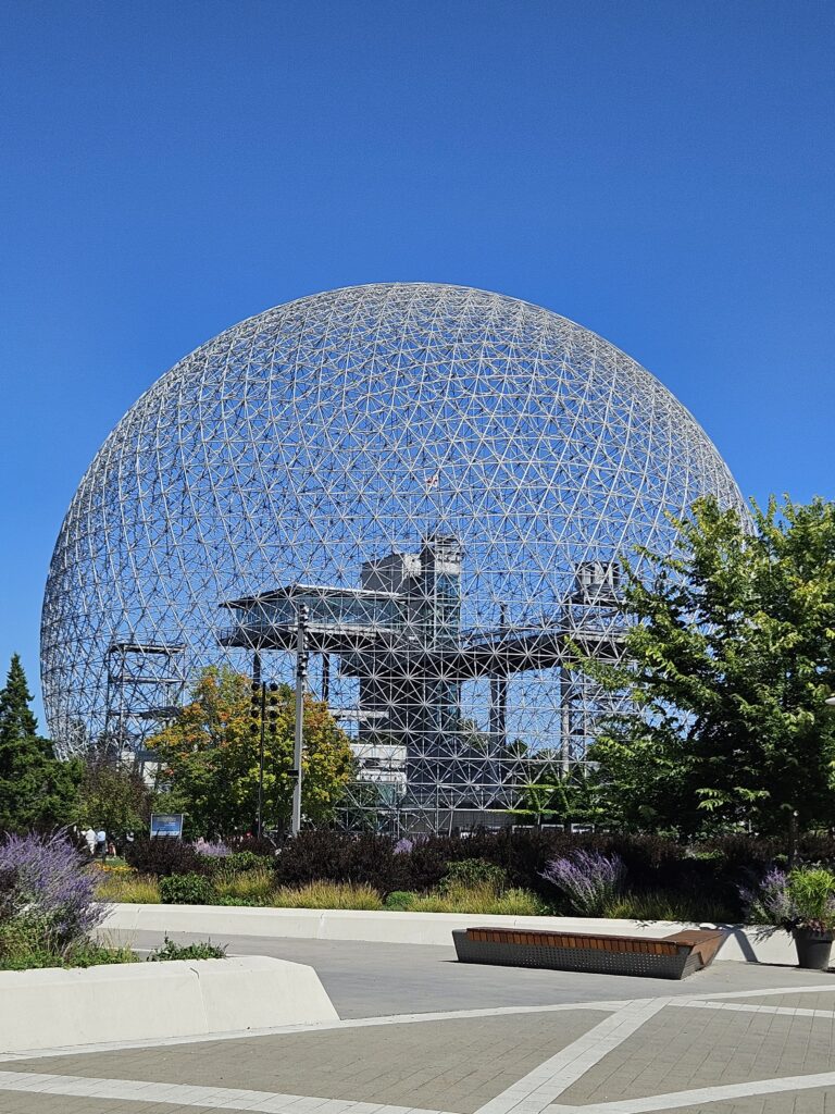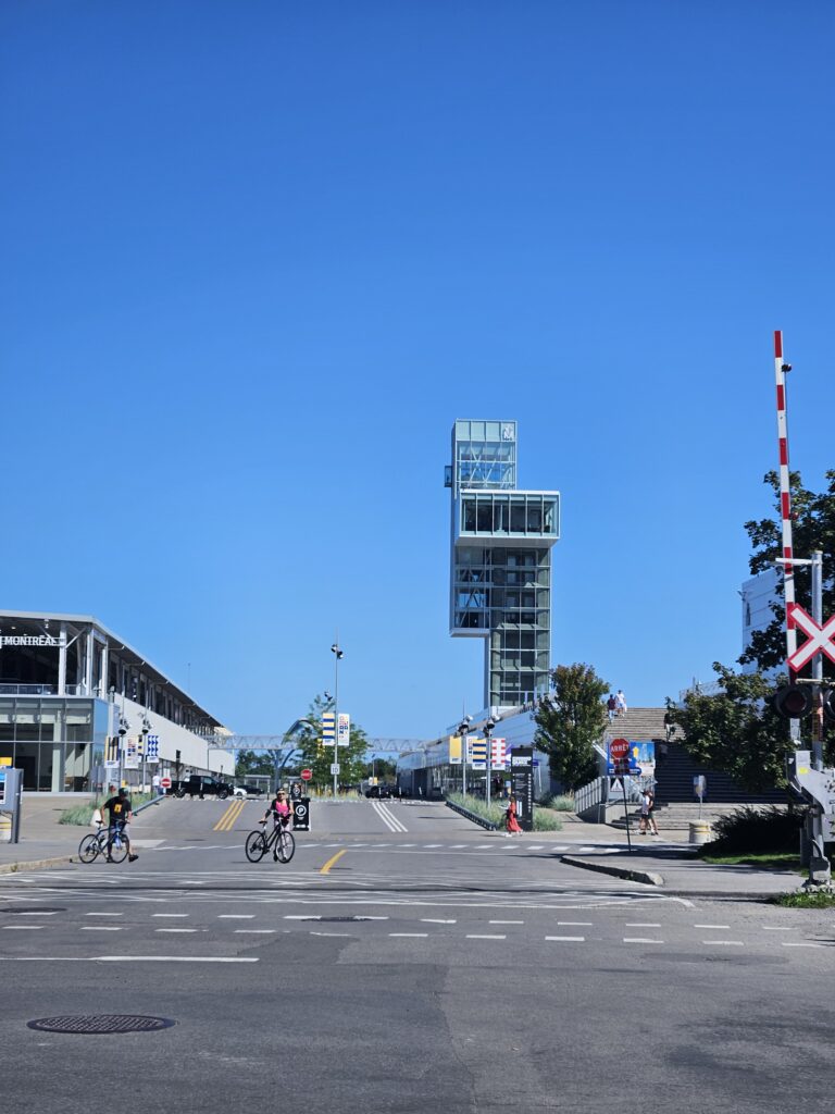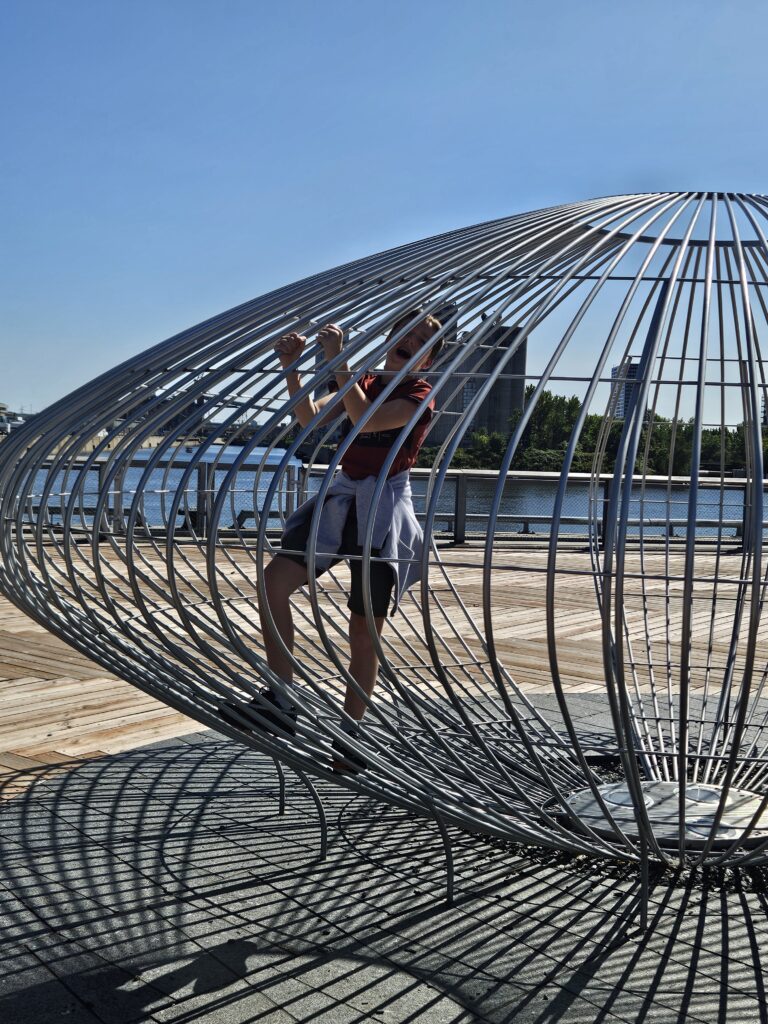 Il fait tellement beau qu’on n’a pas envie de s’enfermer pour visiter les musées de la biosphère. On déjeune sur l’île Sainte-Hélène et nous reprenons le métro pour monter en haut de la tour du port tout en verre.