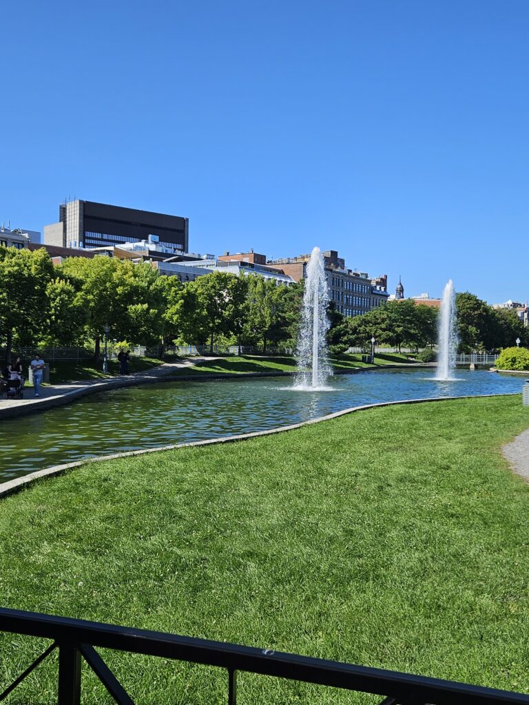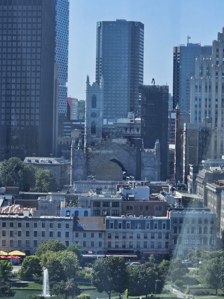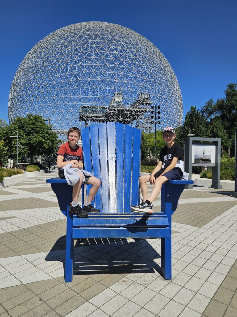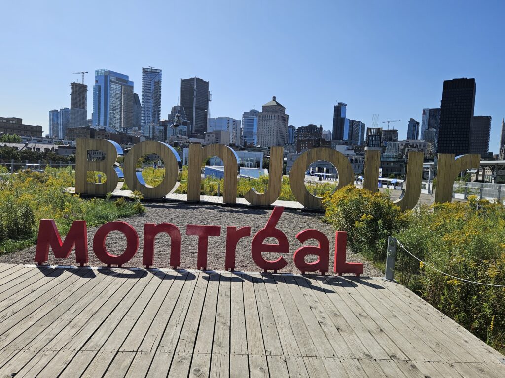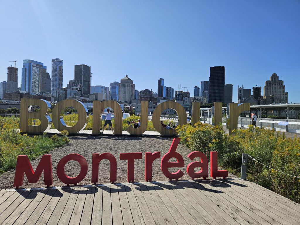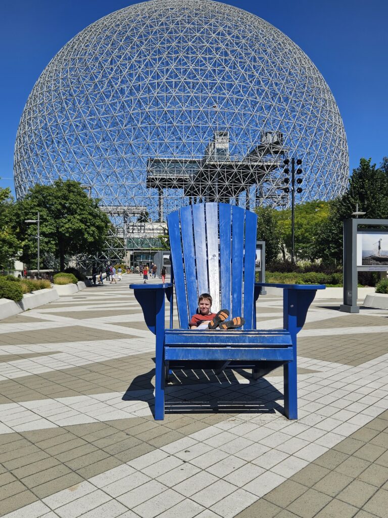 Il fait tellement beau qu’on n’a pas envie de s’enfermer pour visiter les musées de la biosphère. On déjeune sur l’île Sainte-Hélène et nous reprenons le métro pour monter en haut de la tour du port tout en verre.